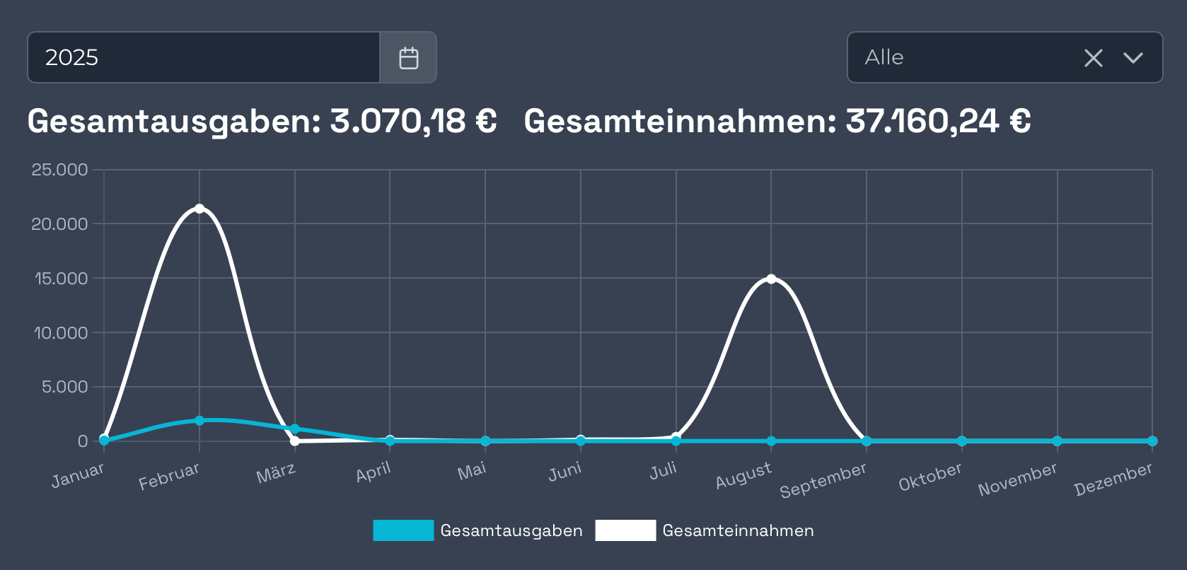 Hier finden Sie alle wichtigen Informationen auf einen Blick – von aktuellen Rechnungen bis hin zu offenen Aufgaben und finanziellen Auswertungen.